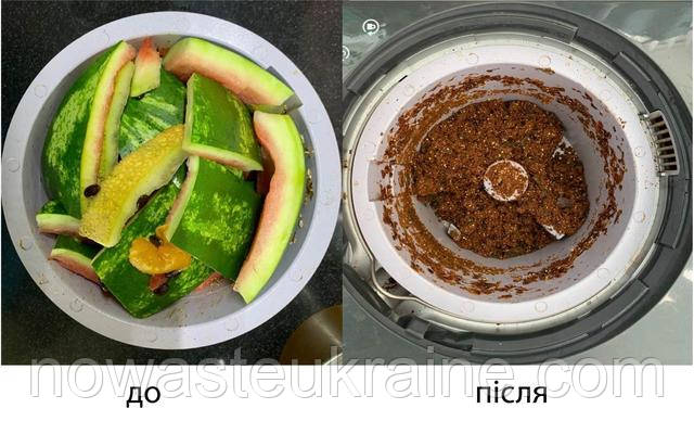 Завантажили повний контейнер (обсяг 2 літри) та дозволили побутовому компостера зробити все самостійно :) В результаті через 6 годин ми отримали суху суміш майже однакової консистенції, готову до використання!